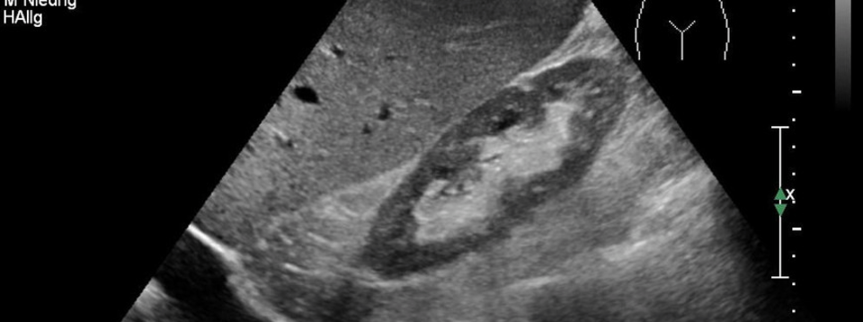 Bei einer Ultraschall-Untersuchung werden verschiedene Körperregionen mit Hilfe von Ultraschallwellen bildlich dargestellt. Mechanische Schwingungen werden an Grenzflächen unterschiedlich reflektiert. Über dieses Prinzip lassen sich Bauchorgane, Lymphknoten und Blutgefässe (mit Blutstromgeschwindigkeit) darstellen. Auch Veränderungen wie Tumore, Gefäßverengungen, Steine etc. sind so erkennbar.